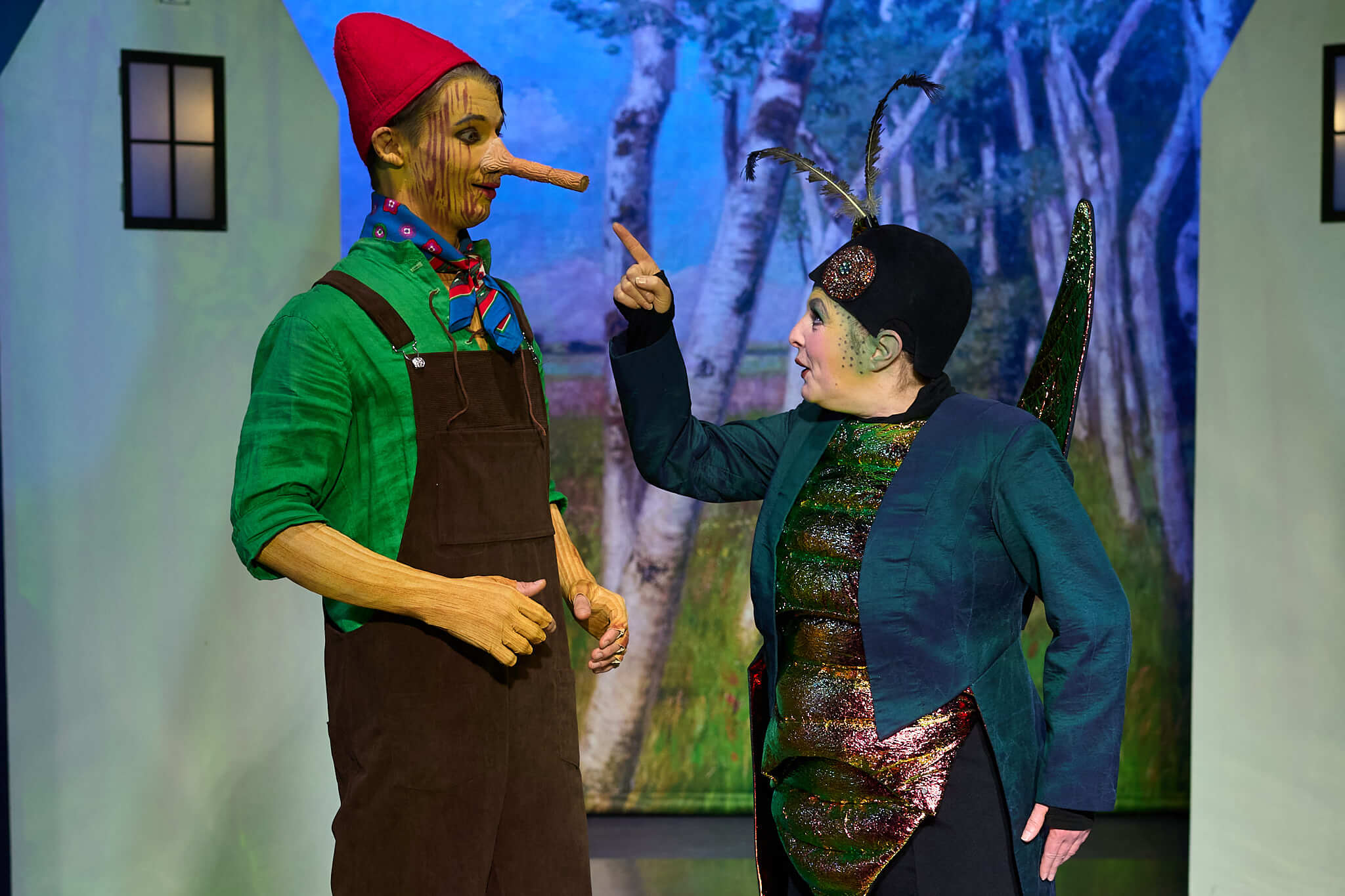 Doch das Leben außerhalb der heimeligen Werkstatt hat so seine Tücken. Pinocchio ist mutig und willensstark, aber auch leichtgläubig. Er begegnet zwielichtigen Gestalten, lässt sich von leeren Versprechen blenden, hört nicht auf die Stimme der weisen Grille – und verheddert sich immer wieder in Lügen, die seine Nase wachsen lassen. Und doch: In seinem Herzen ist er gut. Als Geppetto in Gefahr gerät, zeigt Pinocchio, was wirklich in ihm steckt – und die gute Fee lässt Pinocchios sehnlichsten Wunsch wahr werden: Er wird ein echtes Kind.